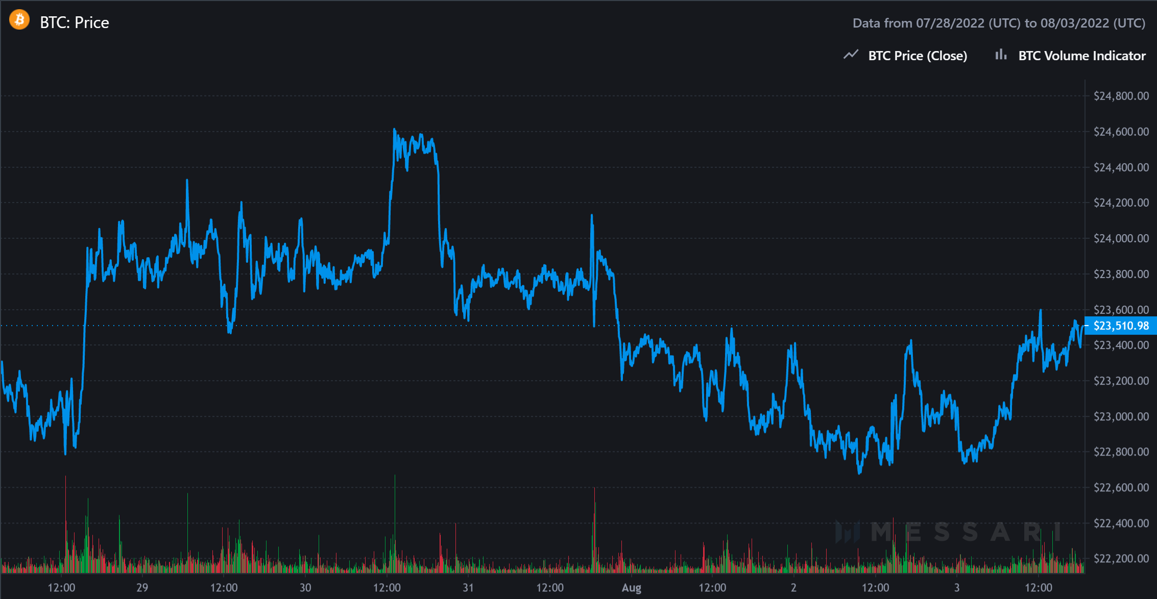 Fangen wir mit dem Rate Hike der Fed an. Jerome Powell kündigte am Mittwoch, den 27. Juli, an der Leitzins würde um 75 Basispunkte auf 2.25 - 2.5% erhöht. Dies löste ein kleines Kurstischfeuerwerk aus und auch Bitcoin erreichte zeitweilig mit 24.600 USD den Höhepunkt der letzten Monate seit dem Erreichen des Tiefs für diesen Zyklus.