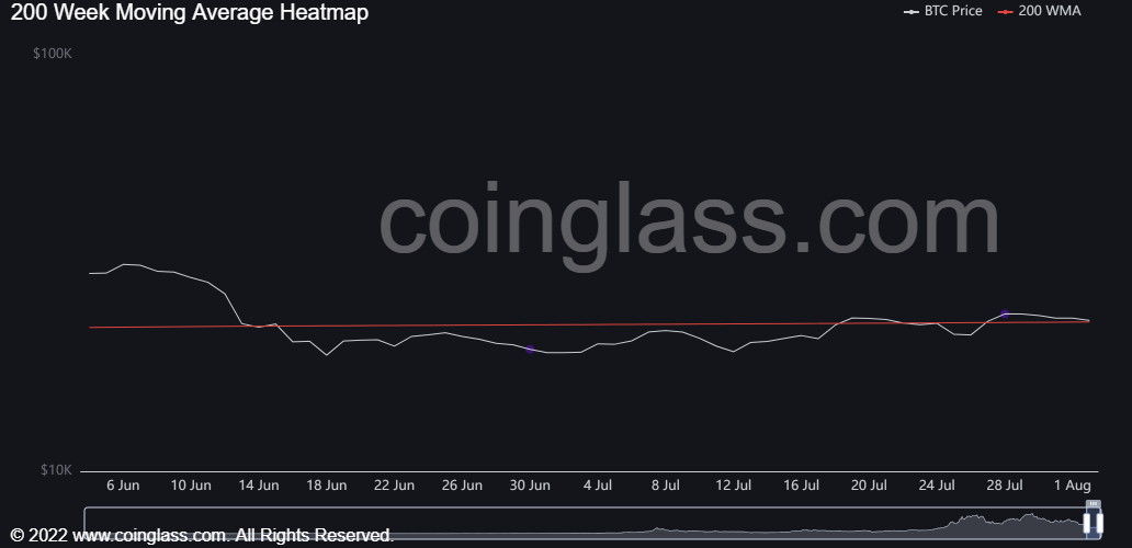 Bitcoin hangelt sich leicht oberhalb des 200 WMA entlang. Dies bedeutet, dass der Preis immer noch sehr überverkauft ist, also einen "bang for the buck" bietet. Der kurze Rückfall zeigt aber auch, dass die Talfahrt noch nicht ganz durchgestanden ist.