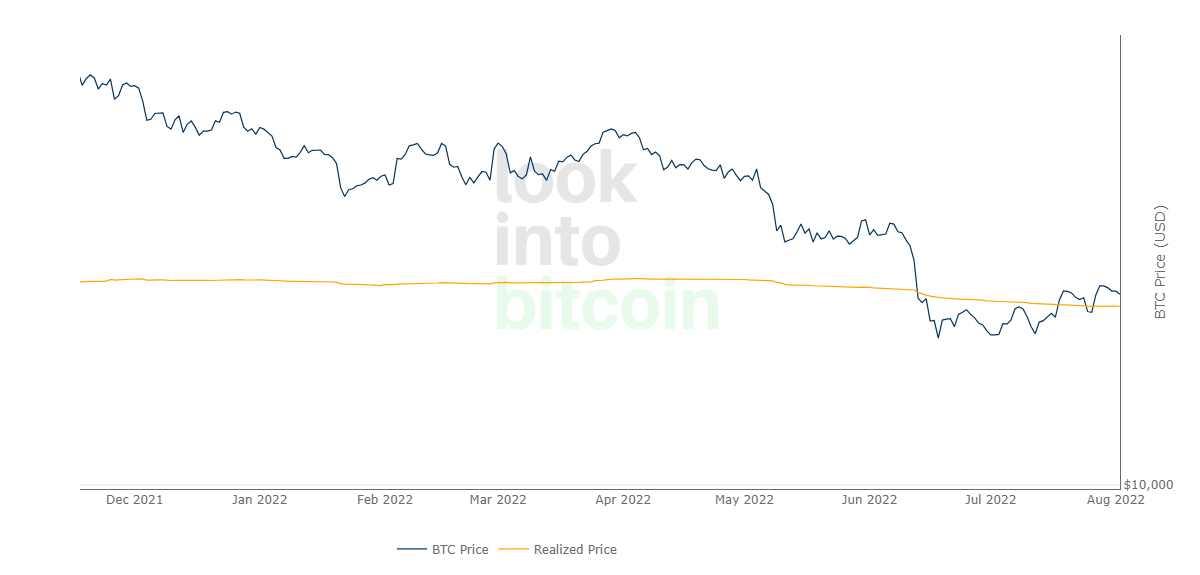 Der Spot Preis liegt wieder über dem Realisierten, was bedeutet, dass die durchschnittliche Kostenbasis jedes bitcoins auf der Chain unter dem theoretischen Wiederverkaufswert liegt. Die meisten Anleger//innen befinden sich also nicht mehr unter Wasser. Allerdings ist dies auch ein kniffliger Punkt, da größere Investoren dies als Chance sehen könnten ihre Position zu schließen und das Abenteuer Bitcoin fürs Erste ad acta zu legen.